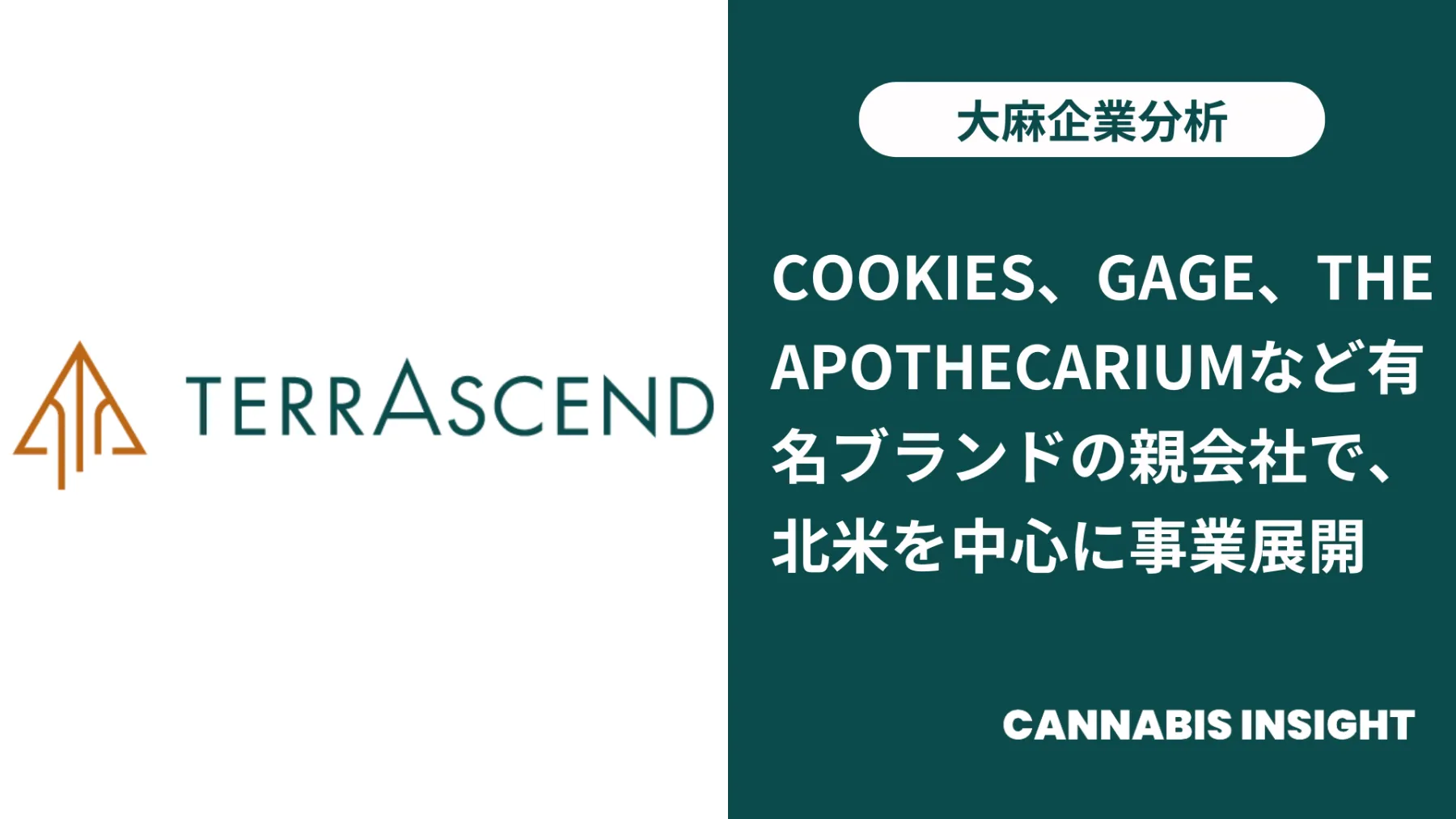 今回は、Cookies、Gage、The Apothecariumなど有名ブランドの親会社で北米を中心に事業を展開する大麻上場企業「TerrAscend(テラセンド)」について解説します。